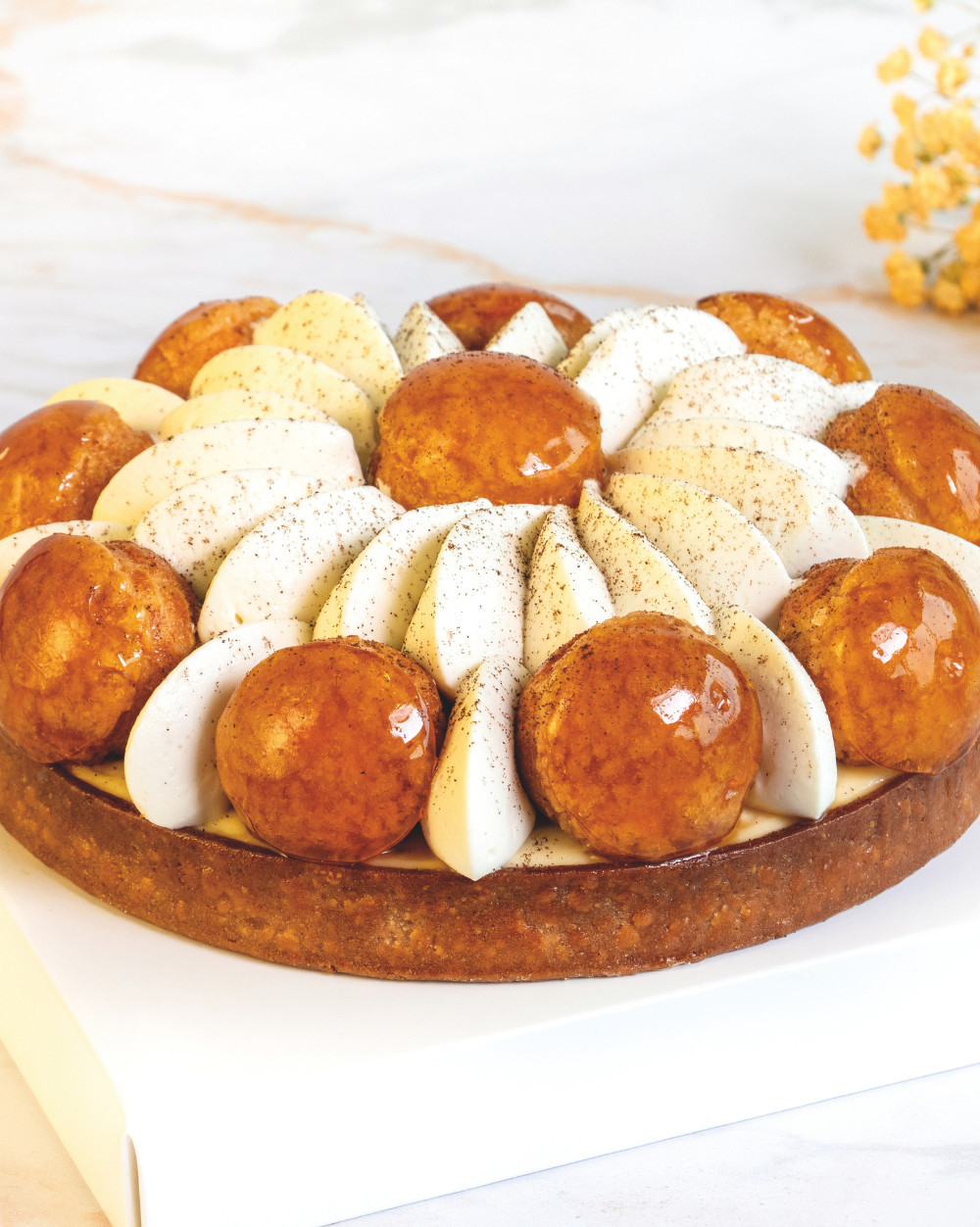 Almond cream, vanilla mascarpone whipped cream, smooth caramel